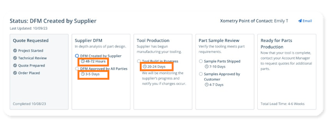 Xometry customers will see the new statuses on their Personal Dashboard, Teamspace Dashboard, and Order Details Pages. Our helpdesk article explains each status in detail.